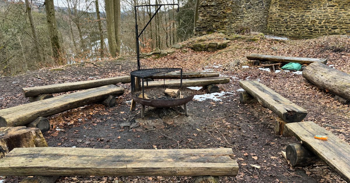 Přímo v areálu se nachází otevřené ohniště. Pokud si tedy do batohu přibalíte špekáček, můžete si tu dopřát naprosto stylový oběd v podhradí.